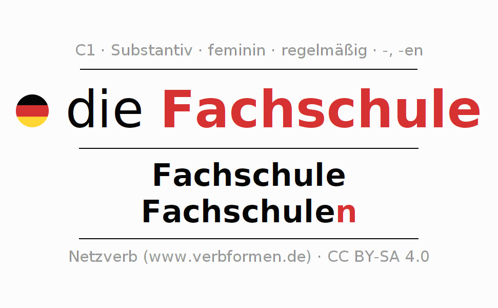 - Singular: die Fachschule, der Fachschule, der Fachschule, die Fachschule
