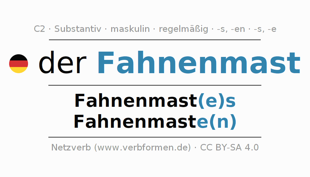 | Akk. | den Fahnenmast | die Fahnenmaste(n) |