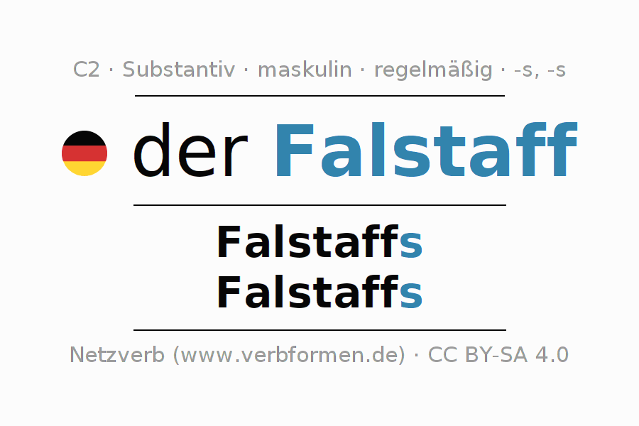 - Plural: die Falstaffs, der Falstaffs, den Falstaffs, die Falstaffs