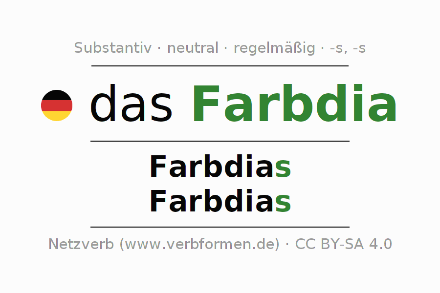 - Singular: das Farbdia, des Farbdias, dem Farbdia, das Farbdia