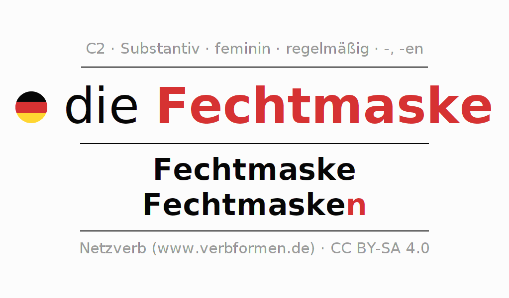 - Singular: die Fechtmaske, der Fechtmaske, der Fechtmaske, die Fechtmaske