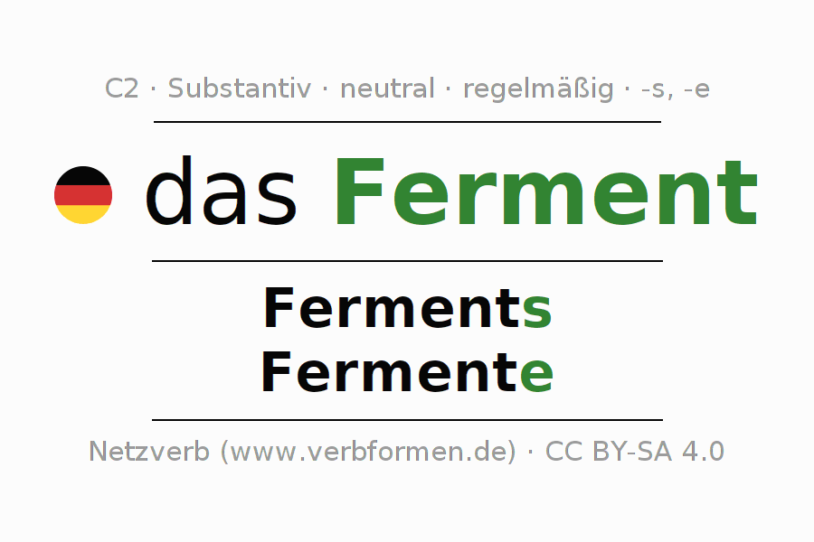 - Singular: das Ferment, des Ferments, dem Ferment, das Ferment