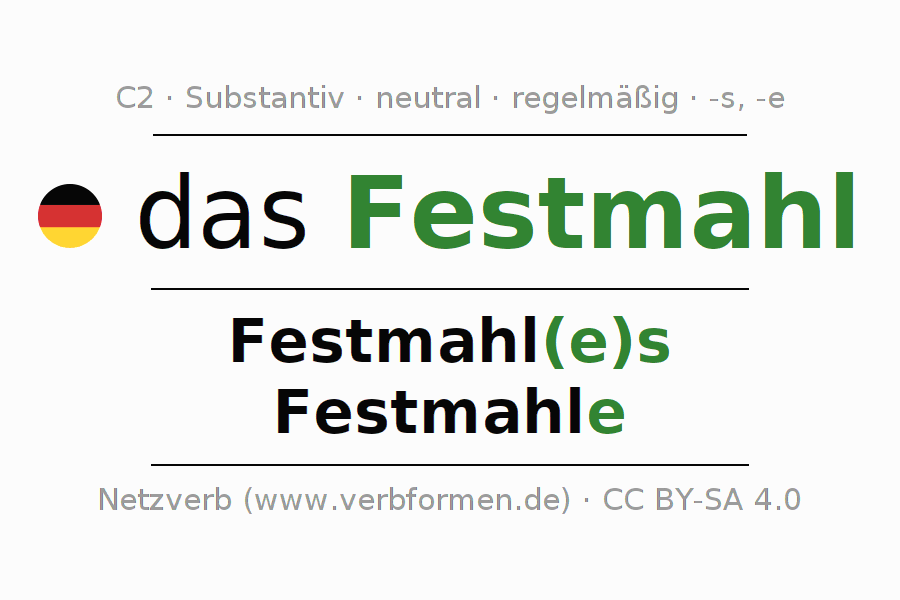 - Plural: die Festmahle, der Festmahle, den Festmahlen, die Festmahle