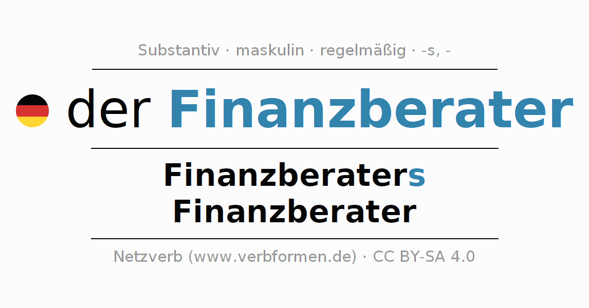 - Singular: der Finanzberater, des Finanzberaters, dem Finanzberater, den Finanzberater