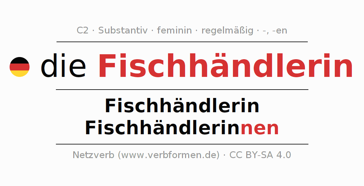 - Singular: die Fischhändlerin, der Fischhändlerin, der Fischhändlerin, die Fischhändlerin