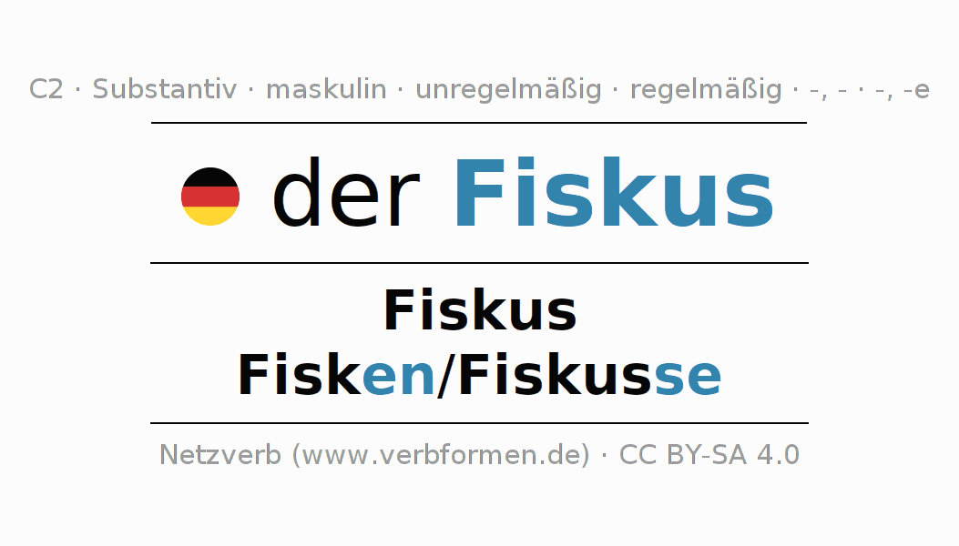 - Singular: der Fiskus, des Fiskus, dem Fiskus, den Fiskus