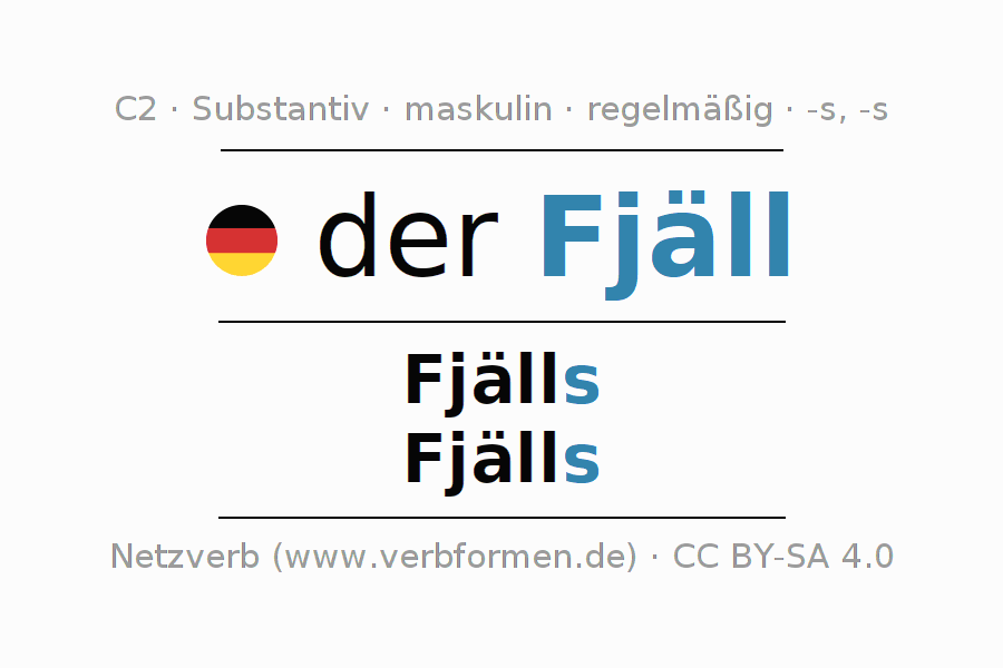 - Singular: der Fjäll, des Fjälls, dem Fjäll, den Fjäll