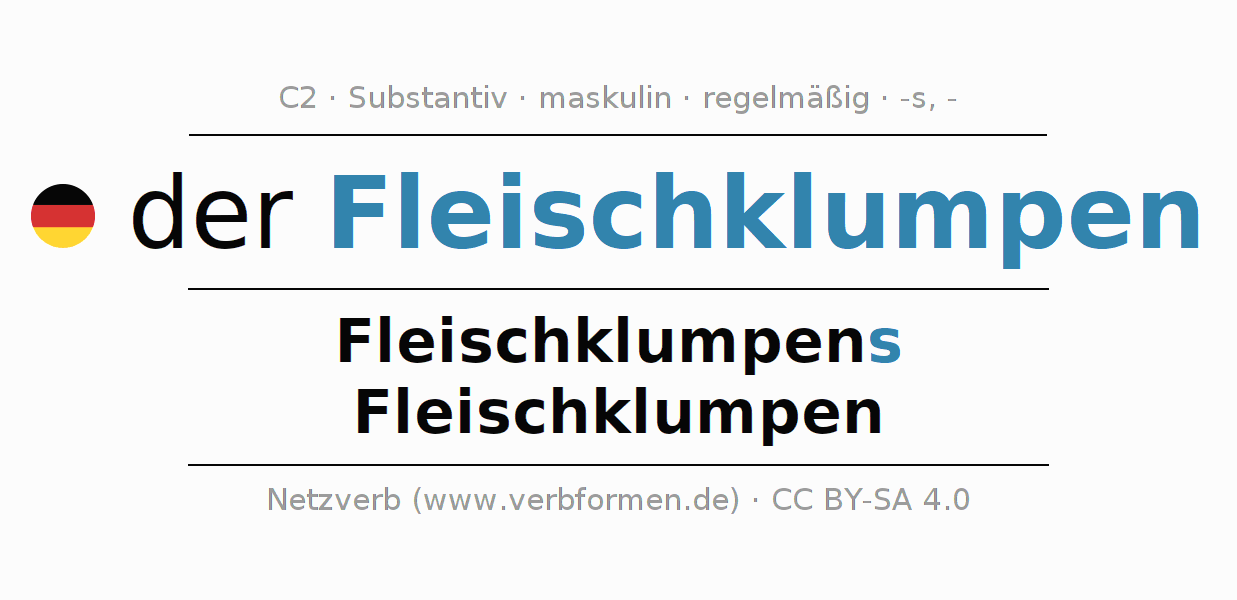 - Singular: der Fleischklumpen, des Fleischklumpens, dem Fleischklumpen, den Fleischklumpen