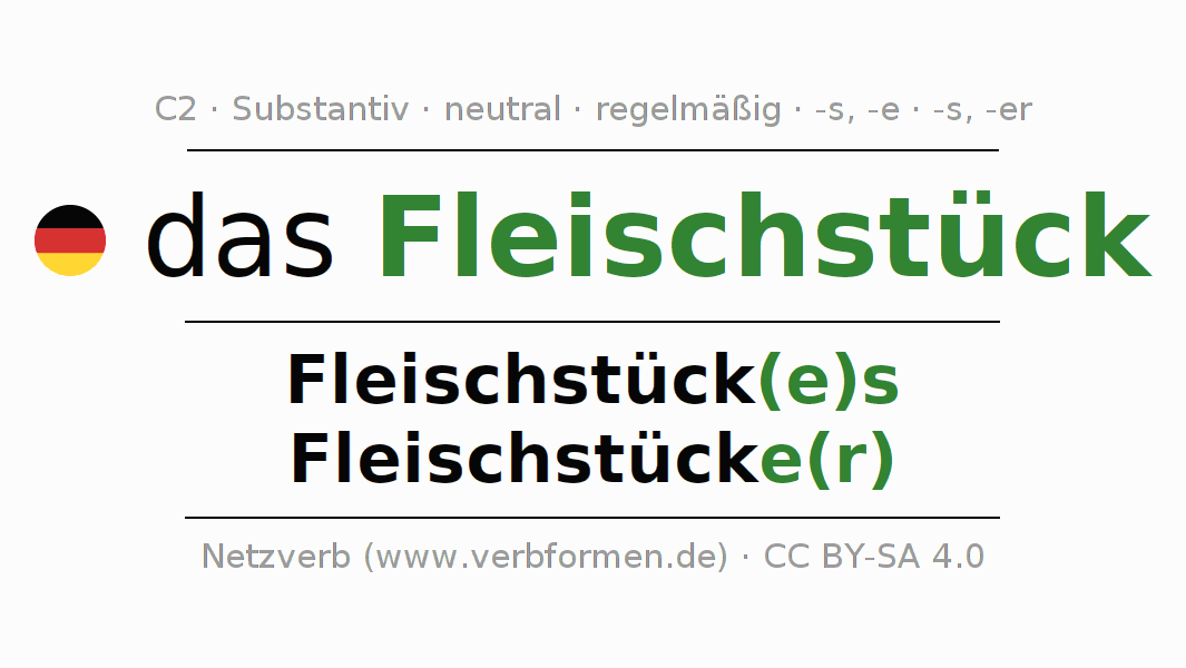 | Nom. | das Fleischstück | die Fleischstücke(r) |