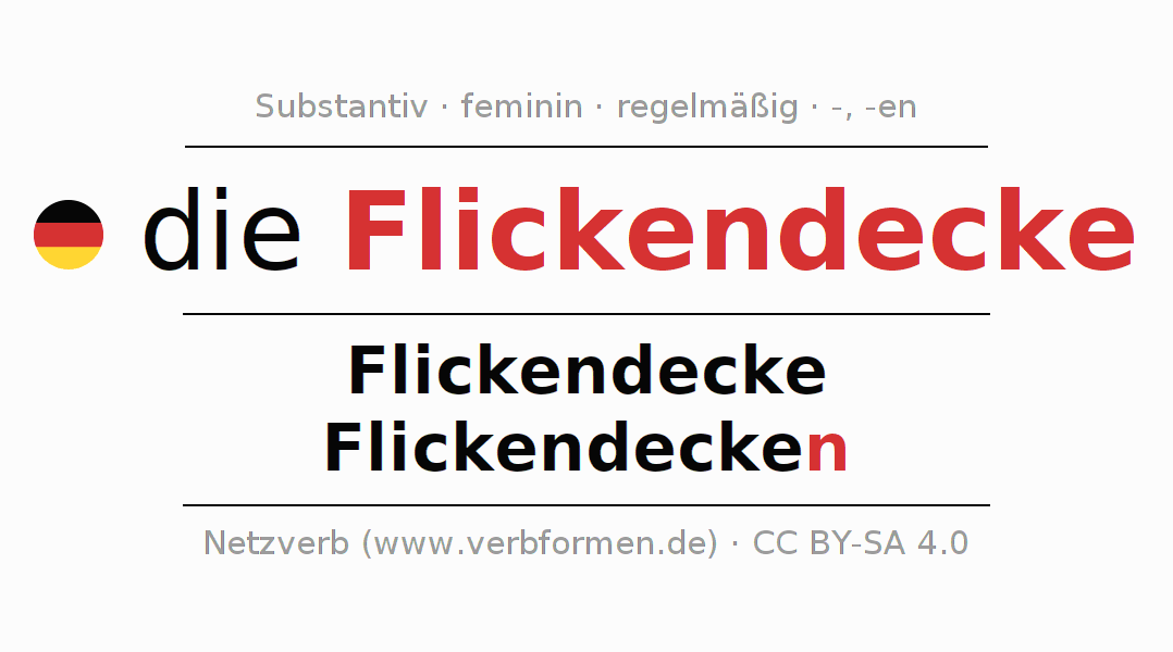 - Singular: die Flickendecke, der Flickendecke, der Flickendecke, die Flickendecke