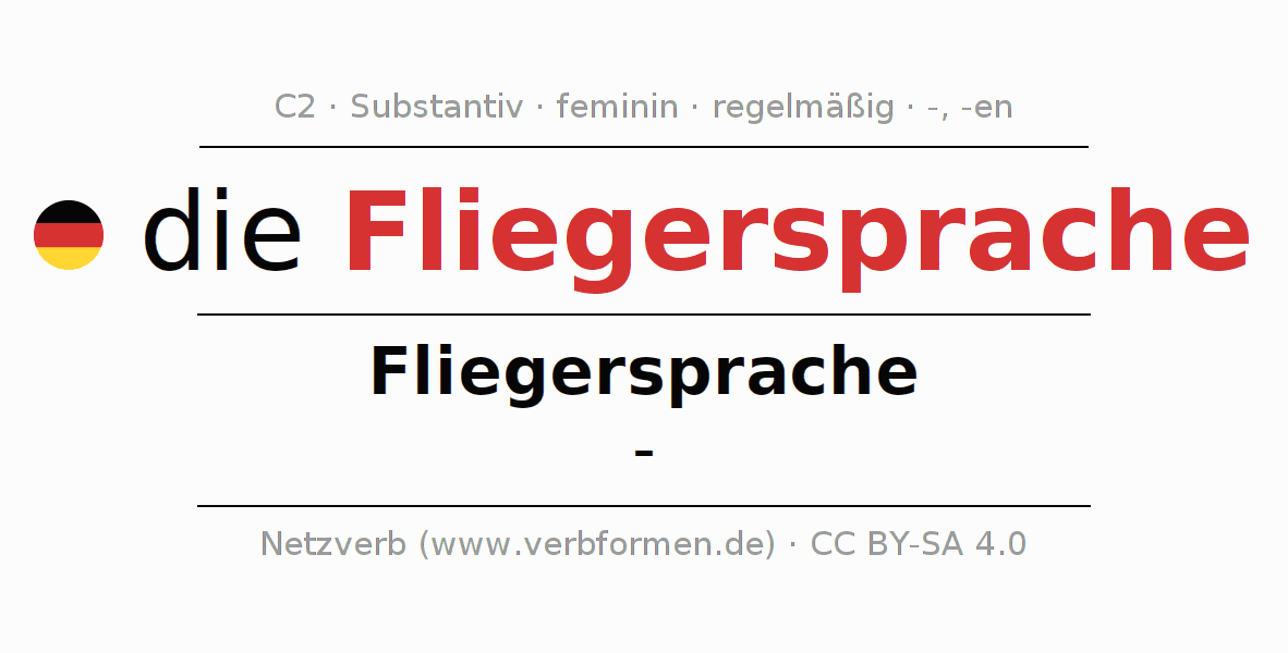- Singular: die Fliegersprache, der Fliegersprache, der Fliegersprache, die Fliegersprache