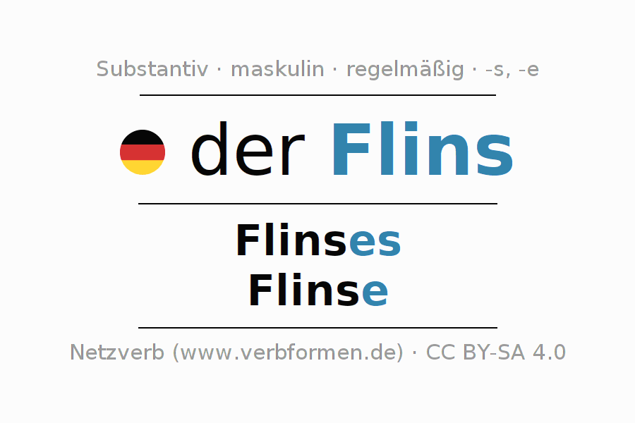 - Singular: der Flins, des Flinses, dem Flins(e), den Flins