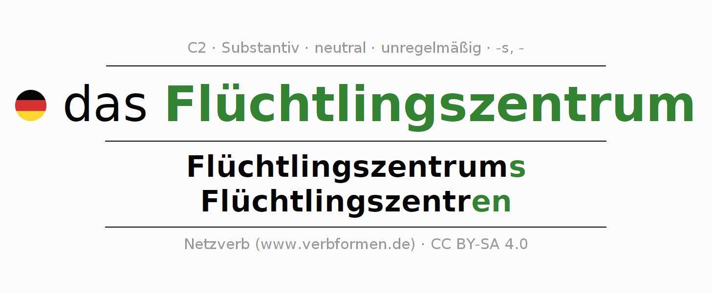 | Akk. | das Flüchtlingszentrum | die Flüchtlingszentren |