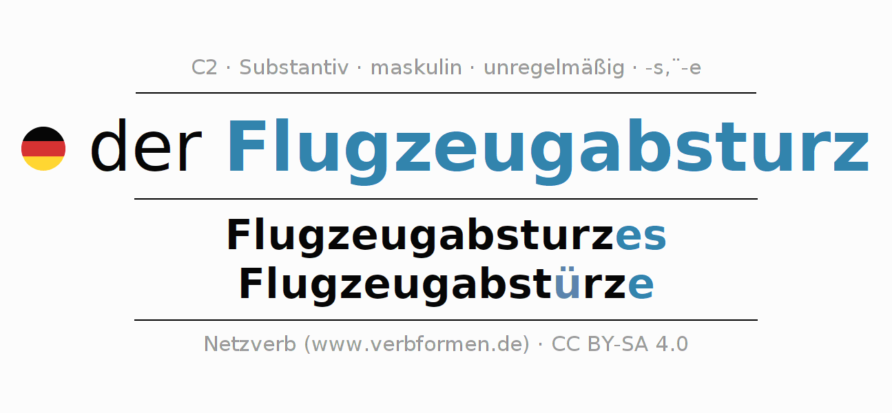 | Akk. | den Flugzeugabsturz | die Flugzeugabstürze |