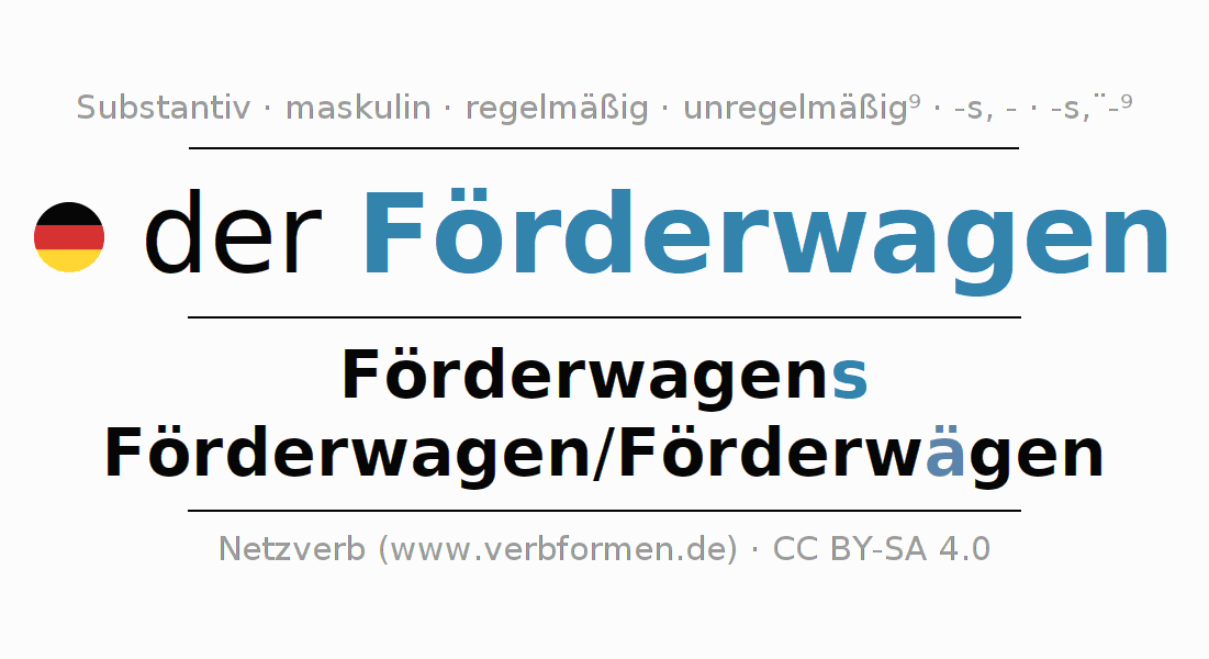 - Singular: der Förderwagen, des Förderwagens, dem Förderwagen, den Förderwagen
