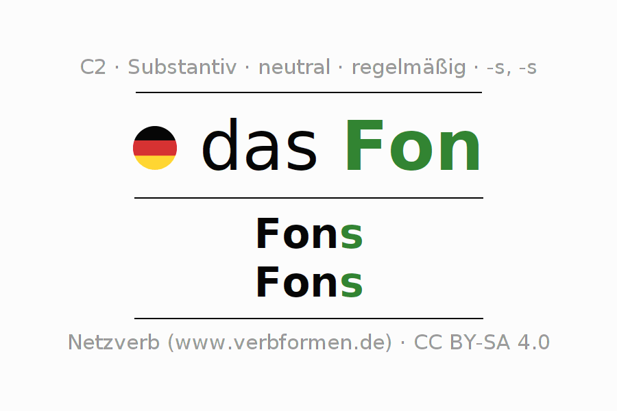 - Singular: das Fon, des Fons, dem Fon, das Fon