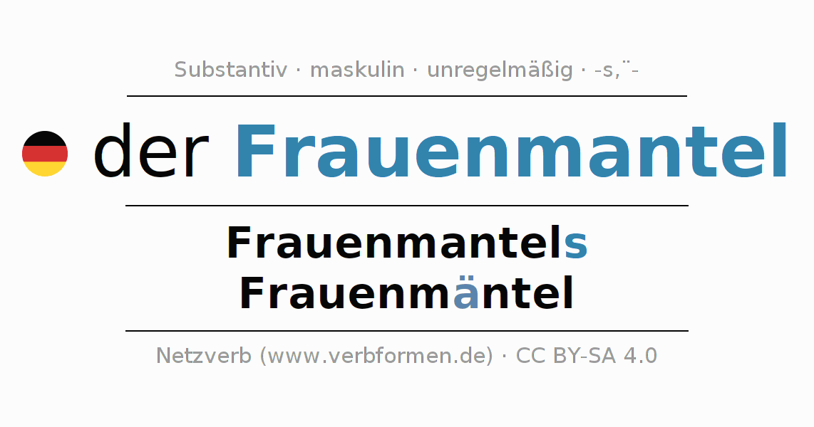 | Dat. | dem Frauenmantel | den Frauenmänteln |