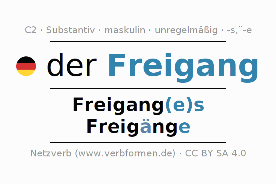 - Plural: die Freigänge, der Freigänge, den Freigängen, die Freigänge