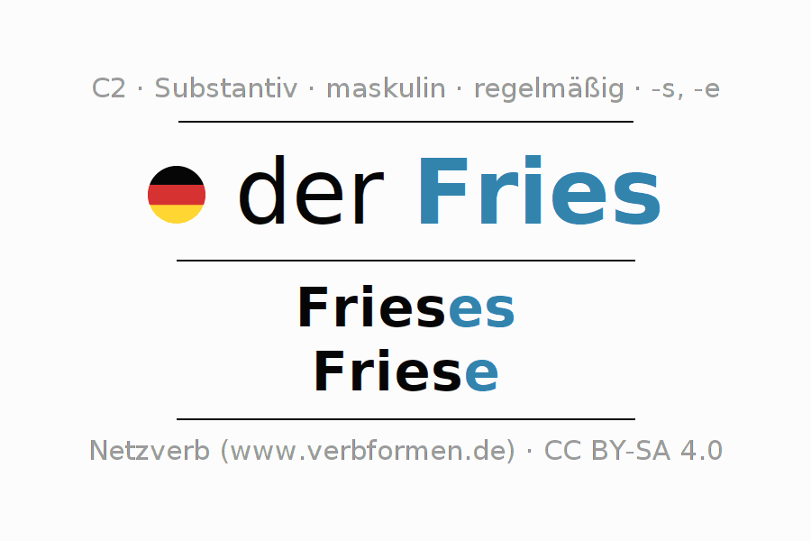 - Plural: die Friese, der Friese, den Friesen, die Friese