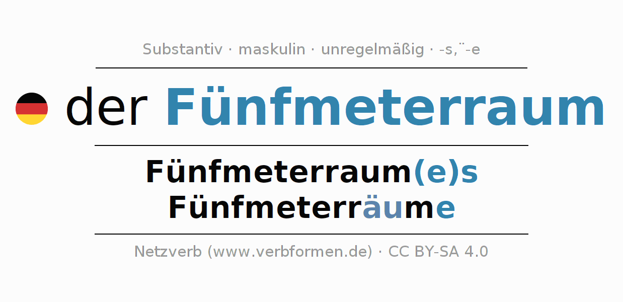 | Nom. | der Fünfmeterraum | die Fünfmeterräume |