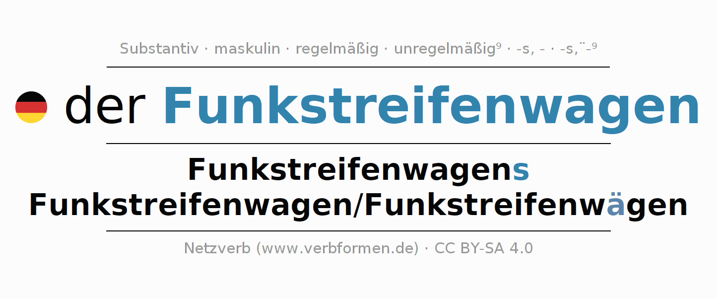 | Nom. | der Funkstreifenwagen | die Funkstreifenwagen/Funkstreifenwägen |