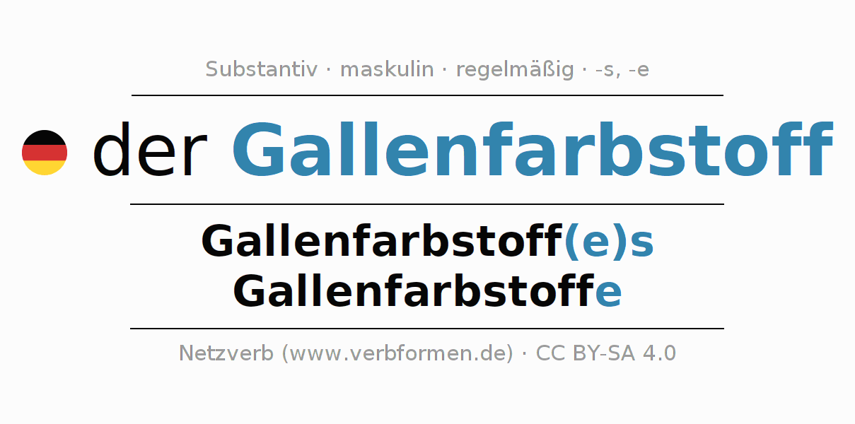 - Singular: der Gallenfarbstoff, des Gallenfarbstoff(e)s, dem Gallenfarbstoff(e), den Gallenfarbstoff