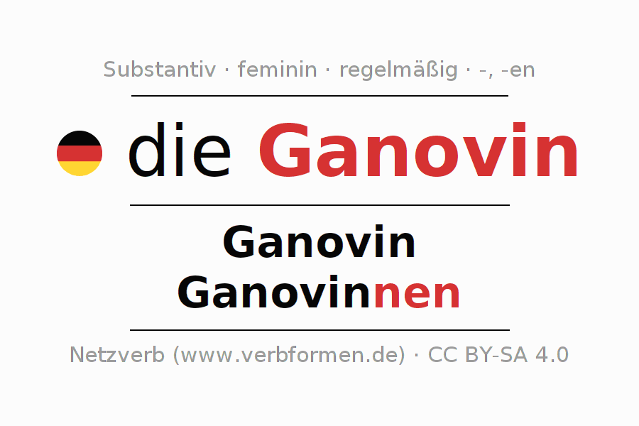 - Singular: die Ganovin, der Ganovin, der Ganovin, die Ganovin