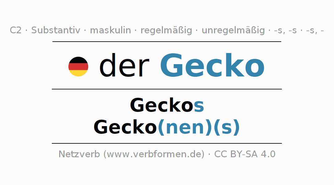 - Singular: der Gecko, des Geckos, dem Gecko, den Gecko