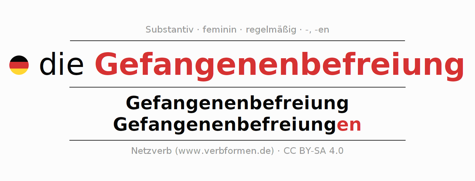 - Singular: die Gefangenenbefreiung, der Gefangenenbefreiung, der Gefangenenbefreiung, die Gefangenenbefreiung