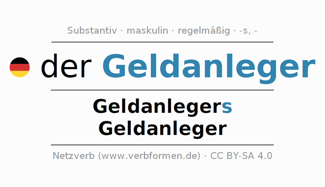 - Singular: der Geldanleger, des Geldanlegers, dem Geldanleger, den Geldanleger