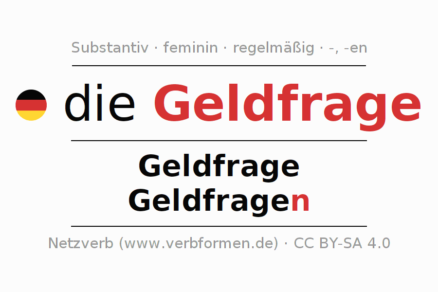 - Singular: die Geldfrage, der Geldfrage, der Geldfrage, die Geldfrage