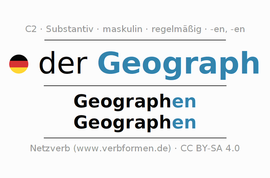 - Singular: der Geograph, des Geographen, dem Geographen, den Geographen