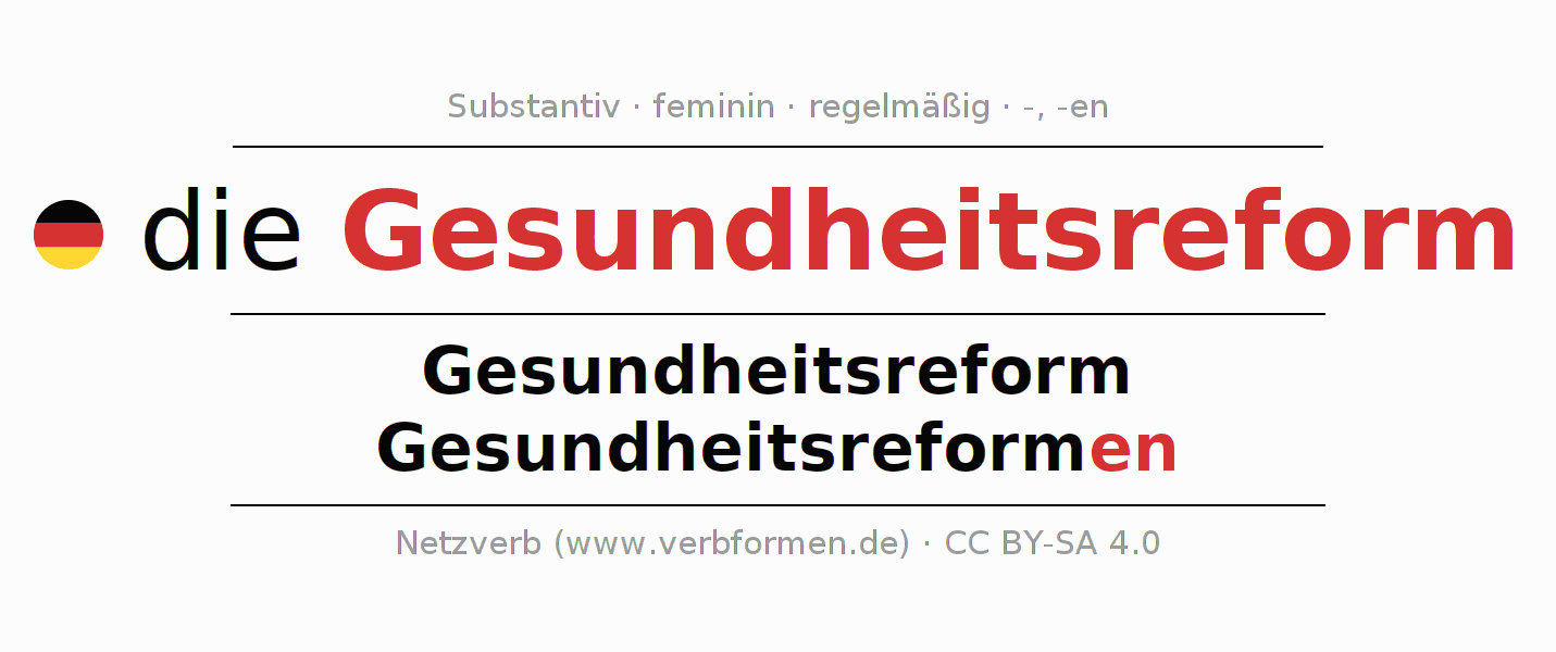 | Nom. | die Gesundheitsreform | die Gesundheitsreformen |