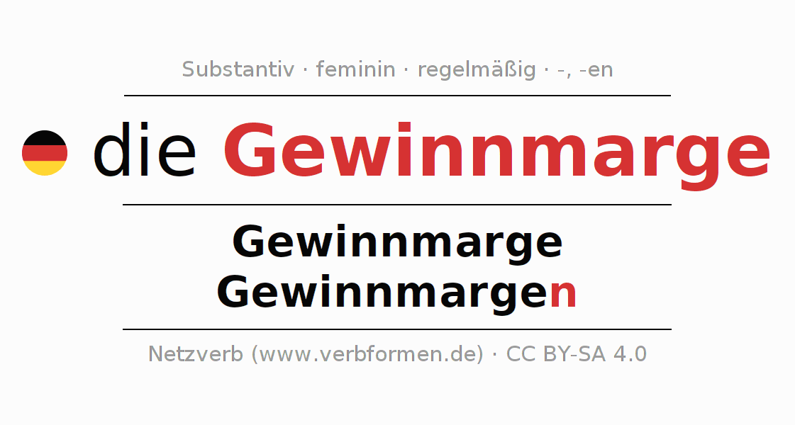 - Singular: die Gewinnmarge, der Gewinnmarge, der Gewinnmarge, die Gewinnmarge