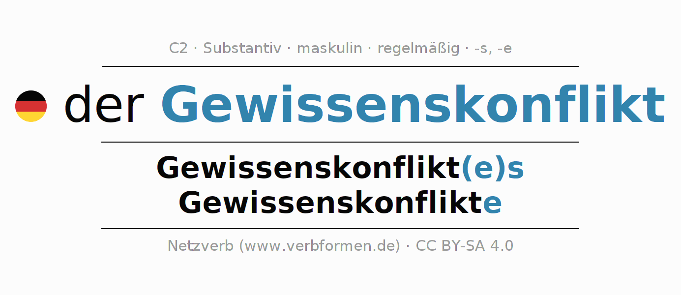 | Dat. | dem Gewissenskonflikt(e) | den Gewissenskonflikten |