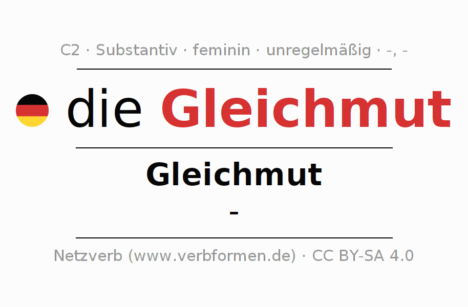 - Singular: die Gleichmut, der Gleichmut, der Gleichmut, die Gleichmut
