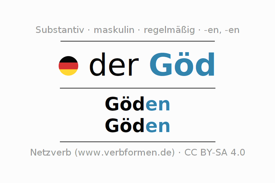 - Plural: die Göden, der Göden, den Göden, die Göden