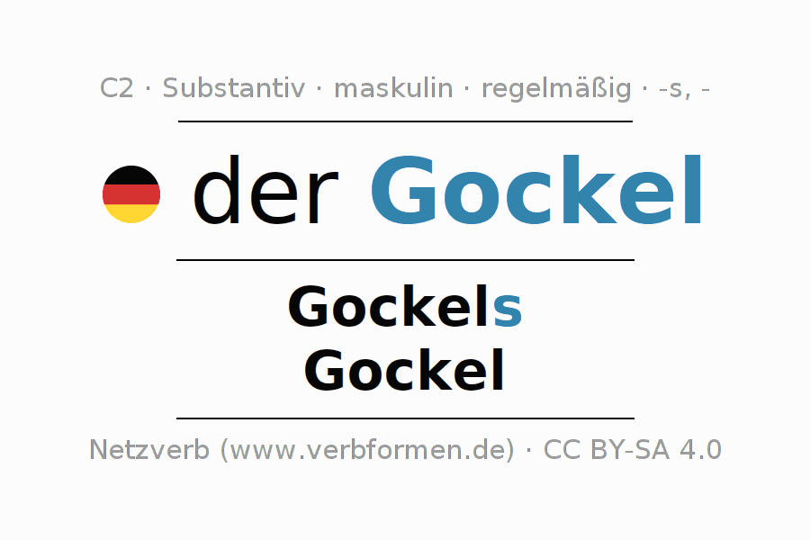 - Plural: die Gockel, der Gockel, den Gockeln, die Gockel