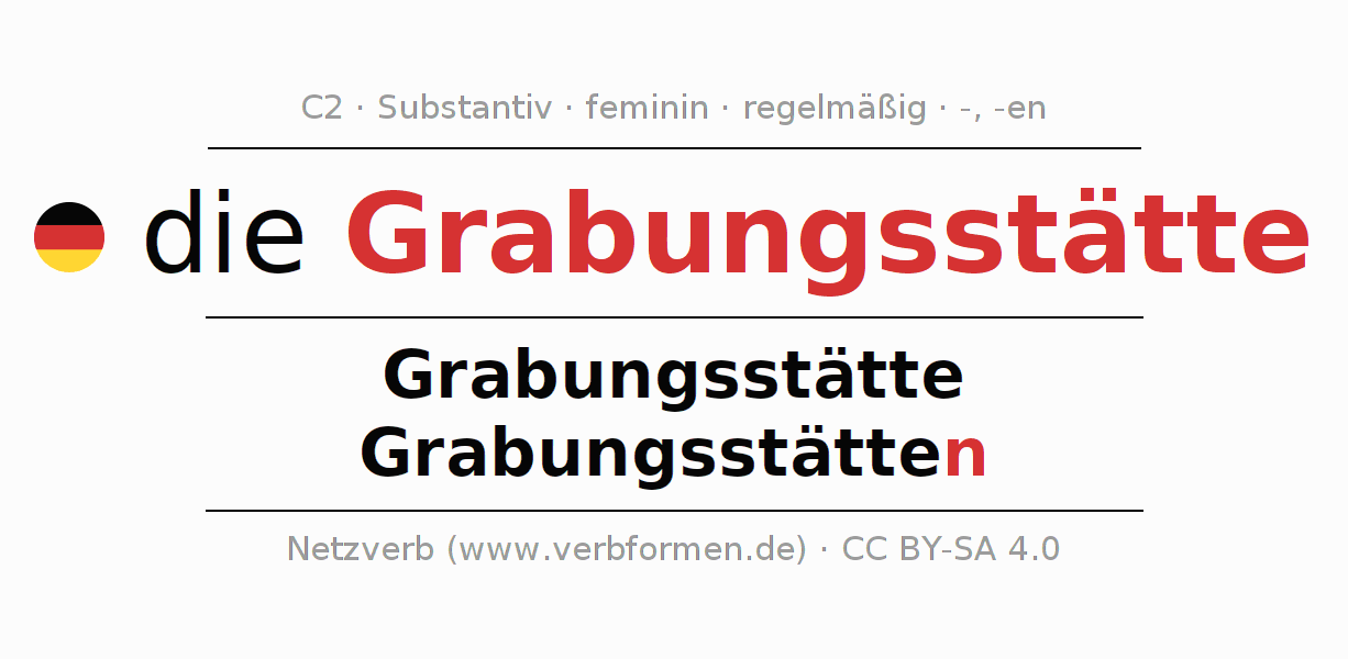 - Singular: die Grabungsstätte, der Grabungsstätte, der Grabungsstätte, die Grabungsstätte