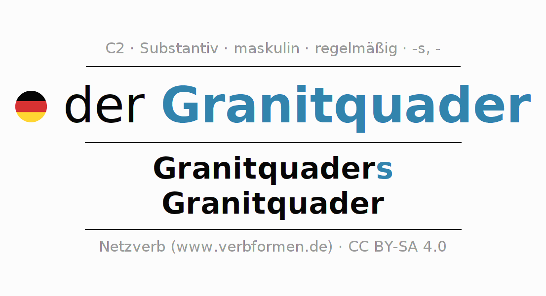 - Singular: der Granitquader, des Granitquaders, dem Granitquader, den Granitquader