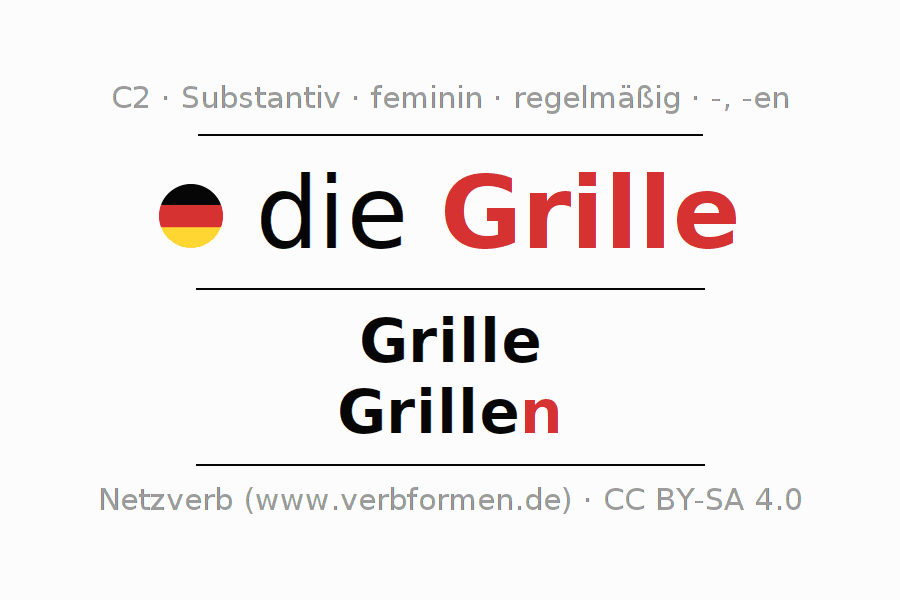 - Singular: die Grille, der Grille, der Grille, die Grille