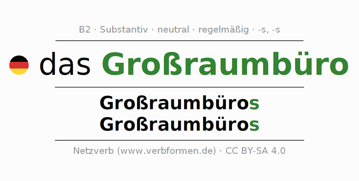 Nom. | das Großraumbüro | die Großraumbüros |