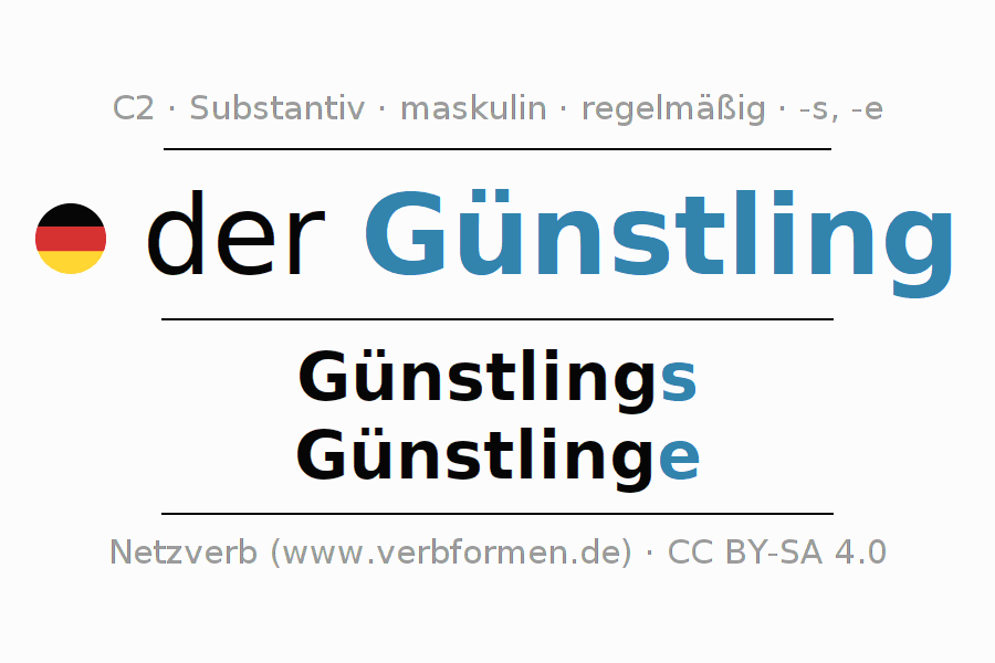 Zusammenfassung aller Deklinationsformen des Substantivs, Nomens bzw. Nennworts Günstling in allen Fällen bzw. Kasus
