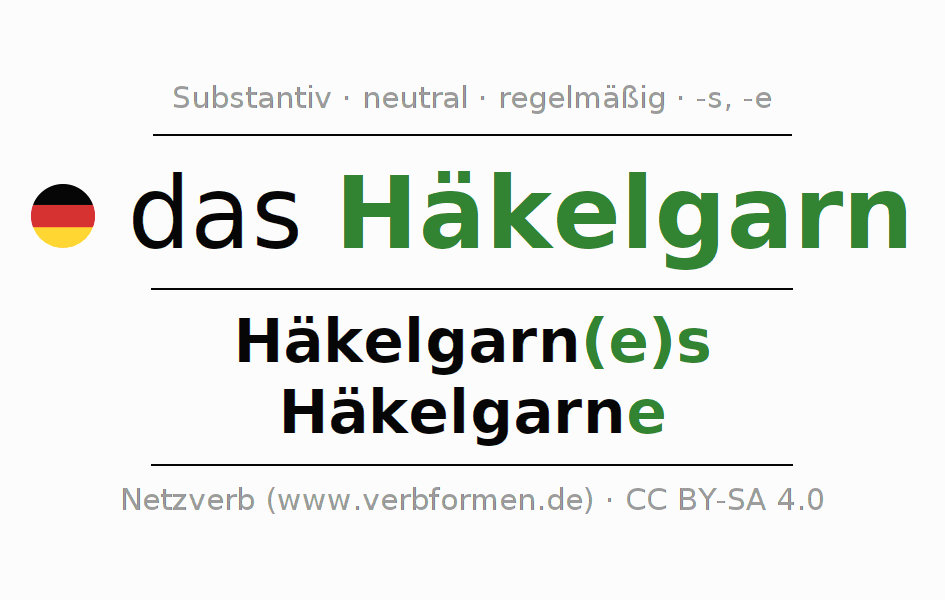 | Nom. | das Häkelgarn | die Häkelgarne |