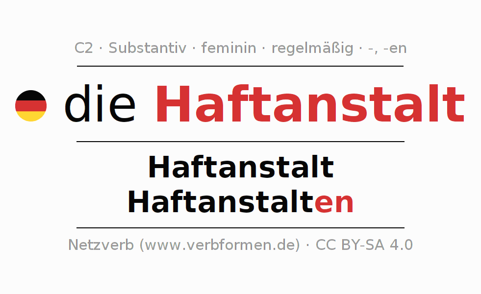 - Singular: die Haftanstalt, der Haftanstalt, der Haftanstalt, die Haftanstalt