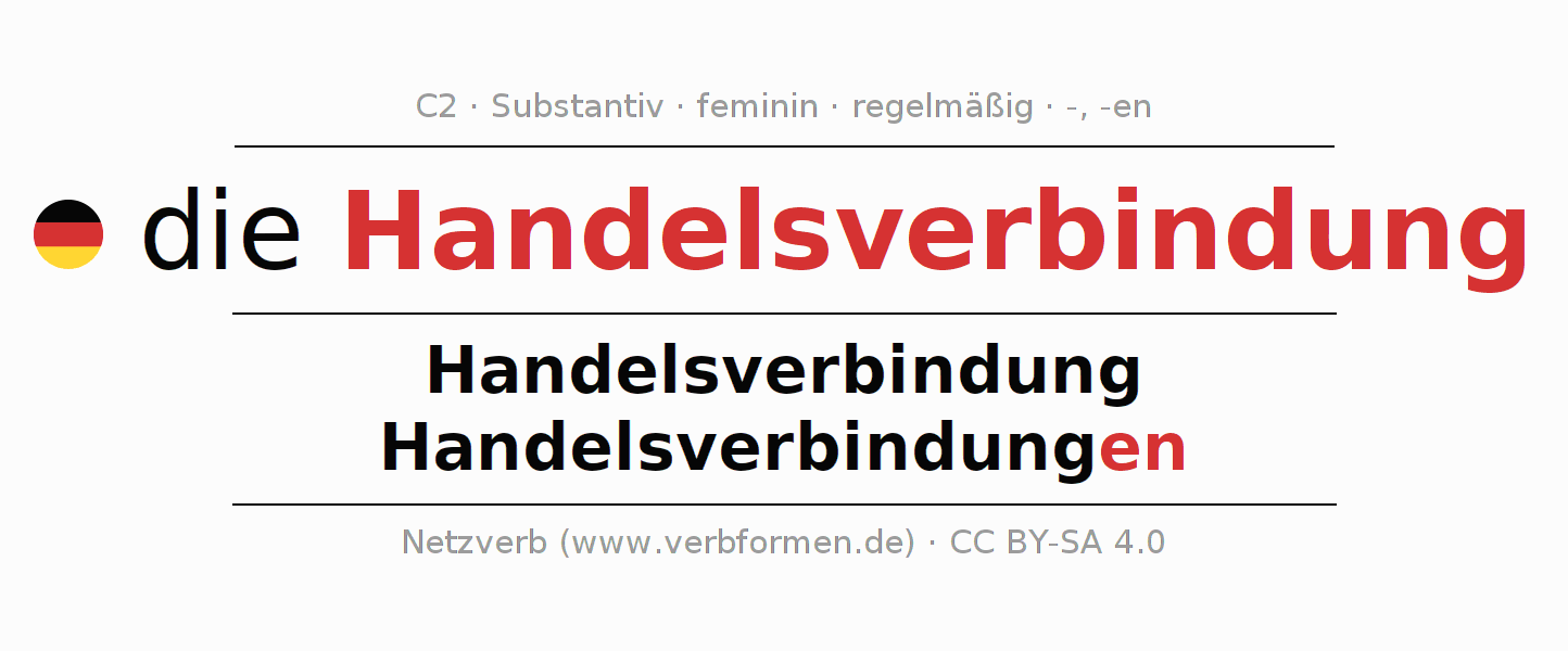 - Singular: die Handelsverbindung, der Handelsverbindung, der Handelsverbindung, die Handelsverbindung