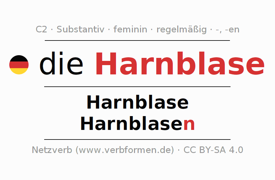 - Singular: die Harnblase, der Harnblase, der Harnblase, die Harnblase