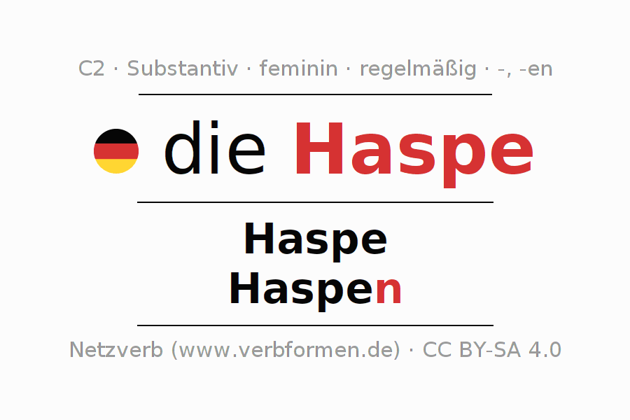 - Singular: die Haspe, der Haspe, der Haspe, die Haspe