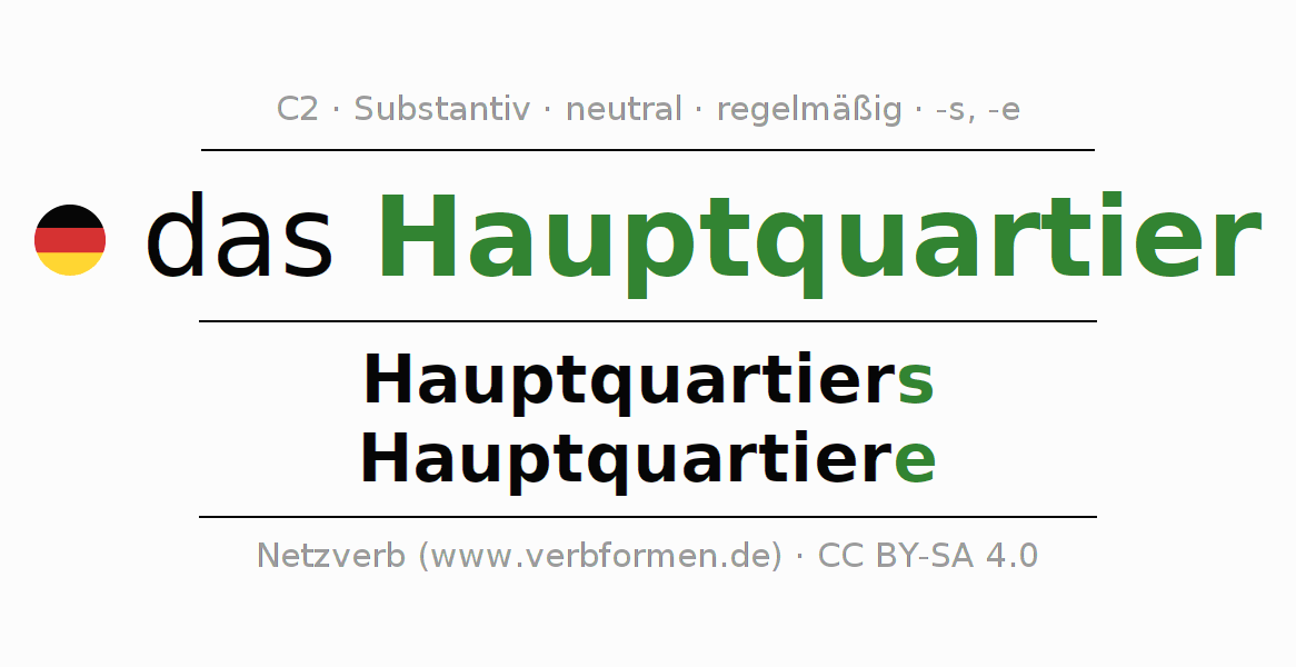 | Nom. | das Hauptquartier | die Hauptquartiere |
