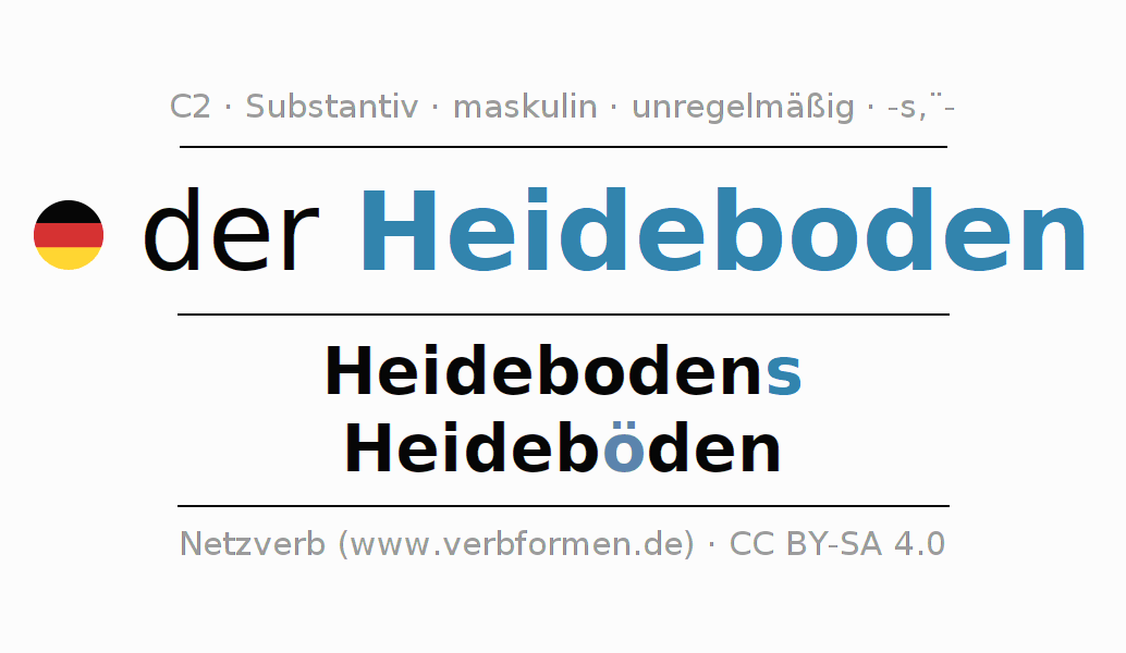 - Singular: der Heideboden, des Heidebodens, dem Heideboden, den Heideboden